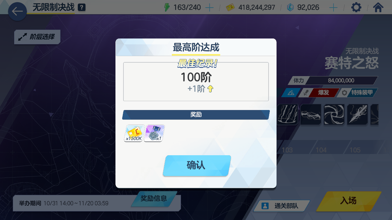 无限制决战-爬塔-蓝甲塞特-100层-无心奈